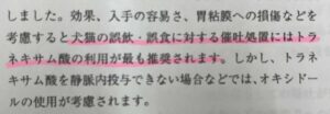 トランサミンは止血剤です。抗炎症作用もあり、ヒトでは風邪でもインフルでもコロナでも飲み薬として処方されます。