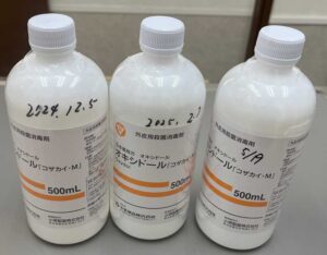 そして、使い道のなくなった490mlのオキシドールの群れです。(10ml飲ませることが多いです。)