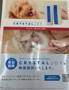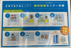 待合室においてある、保険会社が開発販売を手掛けている歯磨きジェル”クリスタルジョイ”のモニターキャンペーンを始めます。